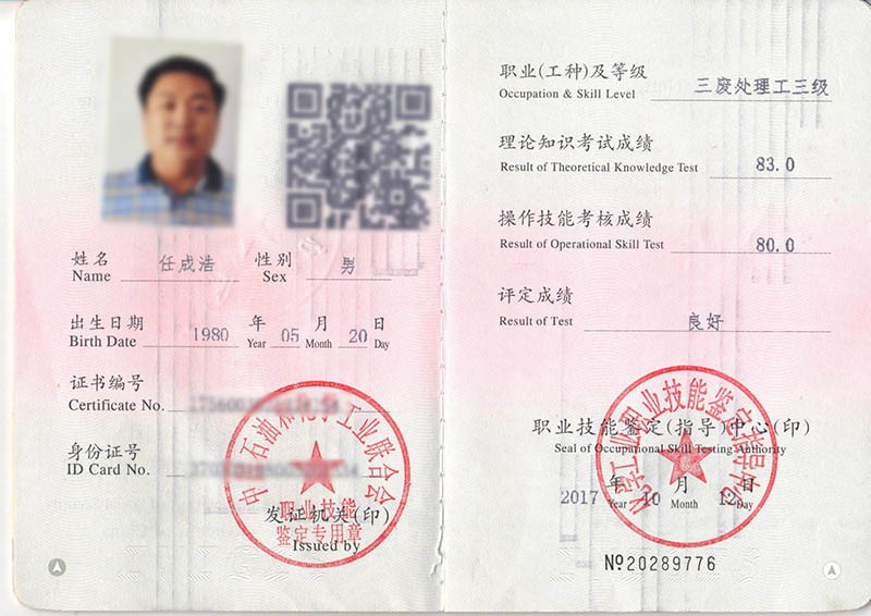 三廢處理資格證書